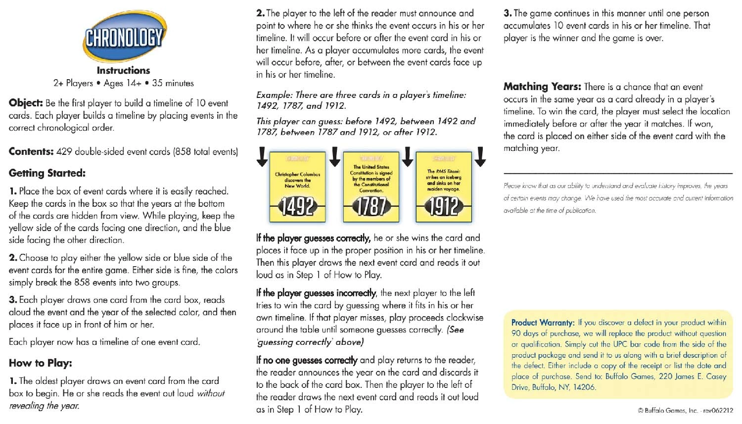 On your turn, someone will read to you a historical event from a card. You decide where that event falls in your timeline.
