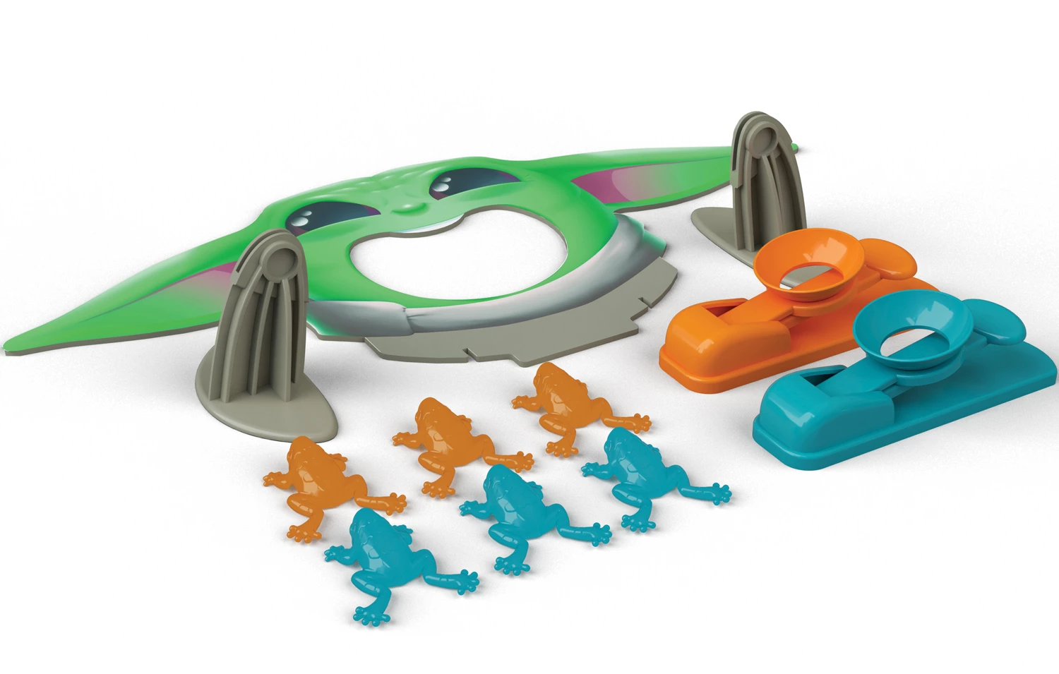 Star Wars™ The Mandalorian™ Snack Time Game. It’s snack time for a hungry, adorable alien in this game featuring the Child from the Disney+ series, The Mandalorian™! Launch squishy frogs through the Child’s mouth to the player on the other side. Both players race to clear their side of the board first. Don’t take turns, both players play at the same time in this fast-paced frog launching game. Protect! Attack! Snack!