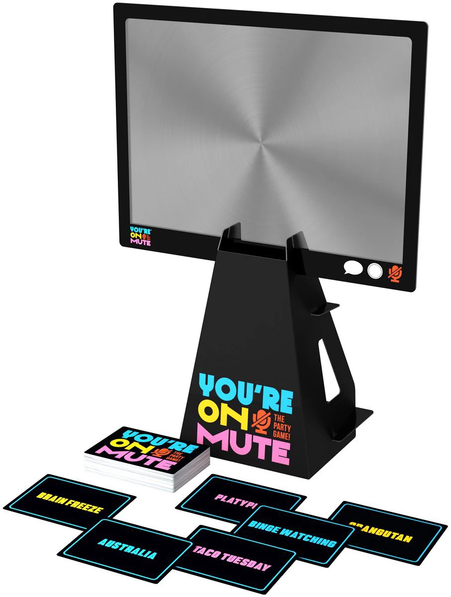 Get some face time in this hilarious guessing game of bad connections! Jump on-screen and connect with your teammates to guess as many keywords as you can. Players take turns being βOn-Screenβ giving clues to their teammates- a literal screen that magnifies your mouth! Each game uses the same key words for all three rounds. Play from a STRONG SIGNAL- where players can say anything when giving clues, to WEAK CONNECTIONS- where they can only use one-word clues. Finally, in the last round YOUβRE ON MUTE and must mouth the key words while zoomed in on screen for all to see.