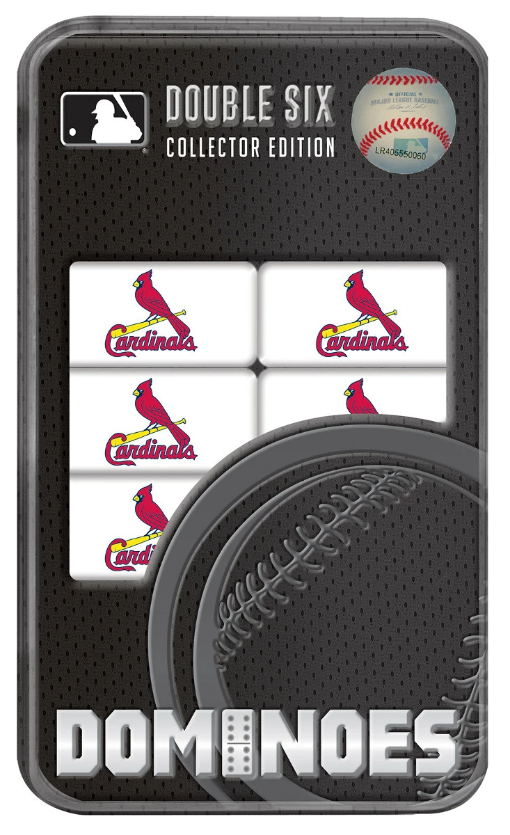 These MLB St Louis Cardinals Team Dominoes are the perfect game for every sports fan! This Double-Sixes Collectible St Louis Cardinals Dominoes Set comes in a collectible tin box, and includes 28 resin dominoes, with team logo printed on the back of each one. Dominoes Instructions are also included. This Sports Dominoes Set is perfect for all sports fans, ages 3 and up!