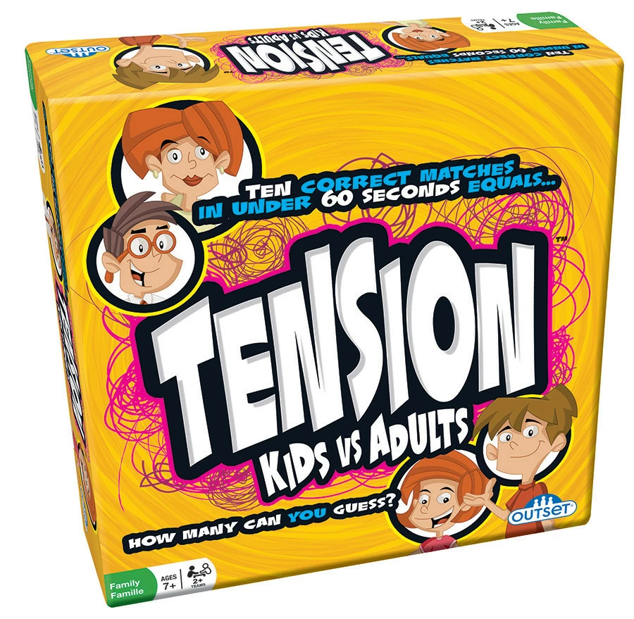 Tension Kids vs. Adults is a family edition of Tension. Β Kids battle the adults in this family themed version of the classic naming game. Β Beware, the kids may know more than you think they do!Β