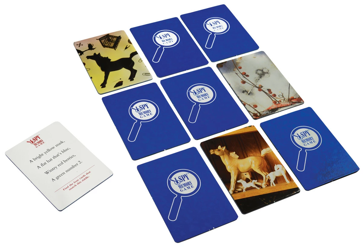 Includes:ย 48 Memory Cards, 9 Riddle Cards, Game Instructions