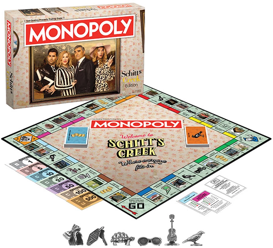 Regroup the family and your dignity to make your way up in MONOPOLY: Schittโs Creek, based on the hilarious Emmy Award-winning comedy series. Join the Rose family on opportunistic adventures as you buy, sell, and trade popular locations from the show, including The Rosebud Motel, Bobโs Garage, Herb Ertlinger Winery and more. Celebrate tongue-in-cheek victories with Hello You and Love That Journey for Me cards, while rent and taxes like Rolandโs Truck and โThatโs Not a Write Off!โ make or break your small-town struggle to come out as the richest little townie and win!