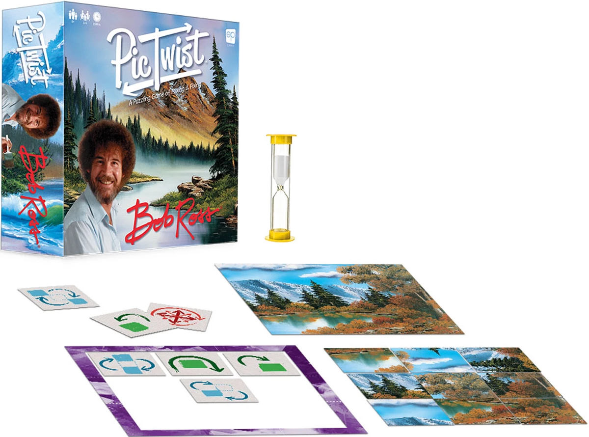 Plan, position, and win in this puzzle game of speed and strategy! In PicTwist: Bob Ross, the scenic landscapes from The Joy of Painting have been scrambled up, appearing upside down, sideways, and out of order. Put your planning skills to the test with Action Cards to race against other players and reconstruct his works of art. Be the first one to correctly restore your painting to win!