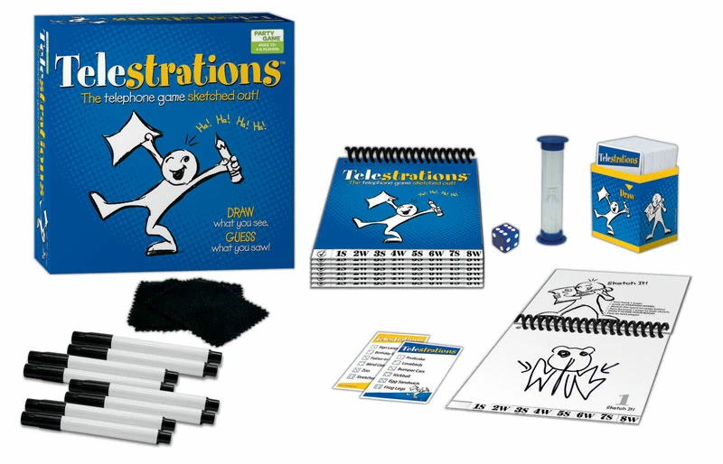 Telestrations is the visual equivalent of the classic school-yard game, Telephone.” It’s a fun – filled sketching game in which everyone’s attempts at “art” can turn hilarious. The game starts with a secret word that is passed from player to player. As the word is sketched, interpreted, and then sketched again, it undergoes a visual transformation that will surprise and delight everyone. Β Telestrations is sure to be a hit at parties.